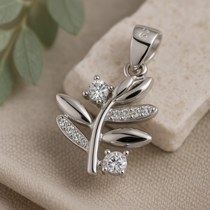 This graceful pendant in 925 sterling silver features a delicate leaf design accented with sparkling CZ stones. A symbol of growth, renewal, and natural beauty, it makes for a chic everyday accessory.